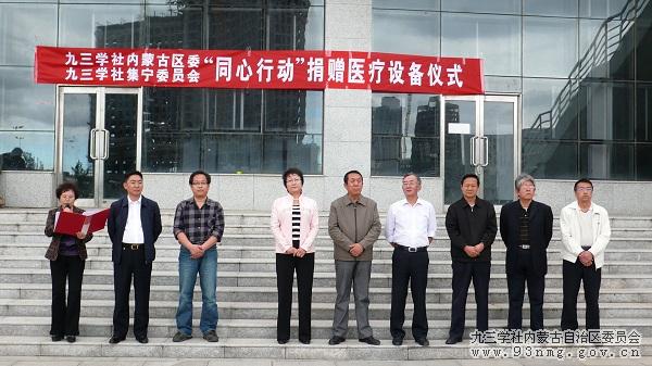 九三学社内蒙古自治区委巡视员林琳、九三学社内蒙古区委副秘书长刘德、九三学社内蒙古区委科技服务部部长王军、北京成龙慈善基金会王秦生、乌兰察布市委统战部长李建平、市人大副主任王玉水、政府副市长王芳、市政协副秘书长杨源、市统战部党派负责人、受赠单位负责人及九三学社集宁委员会的社员等参加了此次活动。