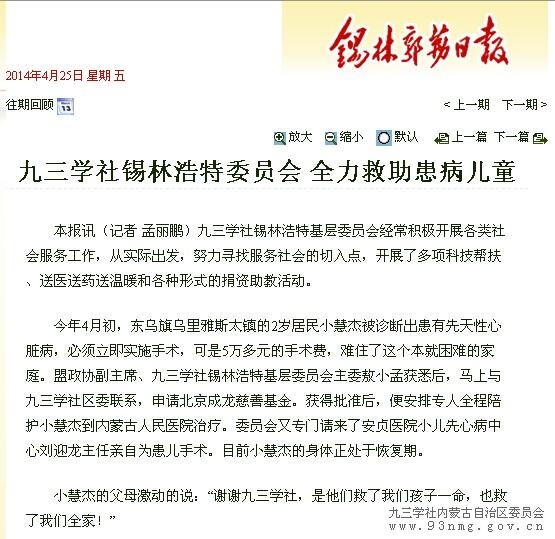 锡林浩特委员会全力救助患病儿童