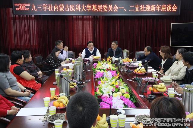 2017年12月22日,九三学社内蒙古医科大学基层委员会一、二支社在社区委机关会议室举行新老社员学习十九大精神暨迎新年座谈会。九三学社内蒙古区委副主委兼秘书长刘德,社医科大学基层委员会、医药工作委员会主委赵海平及社区委组织部副部长张羡出席座谈会并与社员亲切交流。